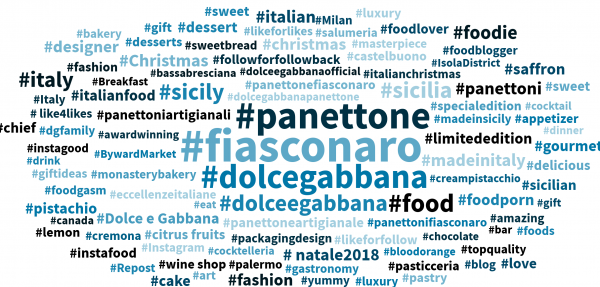 Tra gli #hashtag più ricorrenti in rete, non si può non notare #PackagingDesign. Il suo utilizzo rinforza l’ipotesi che il design della confezione del panettone sia percepito dagli utenti online come uno degli aspetti chiave della collaborazione tra Dolce&Gabbana e Fiasconaro. L’attenzione alla gradevolezza estetica della confezione quasi porta in secondo piano la valutazione riguardo il gusto del panettone stesso. Tutta l’attenzione, dunque, va al suo essere chic – come mostra questo post Instagram trovato in rete: