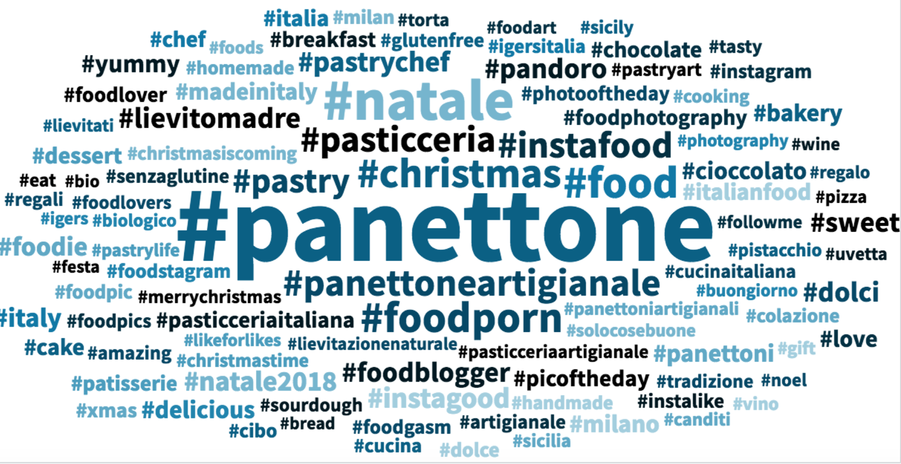 Word cloud #panettone, #natale, #food. Dolci natalizi e food blogger per il #digitalfood delle feste. © Riproduzione riservata