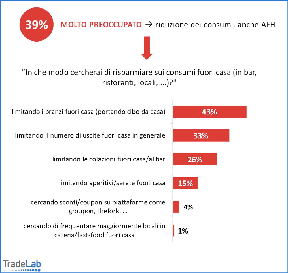 Fase 2: Preoccupazioni economiche e riduzione consumi fuori casa. Grafico a barre. © Riproduzione riservata