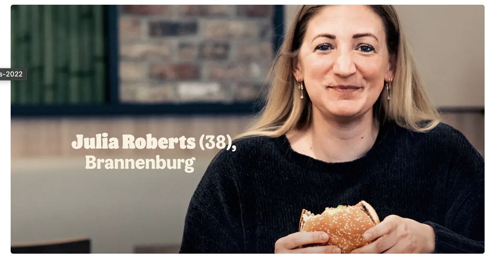 Campagna Burger King: donna sorridente mangia hamburger. Julia Roberts (38) a Brannenburg. © Riproduzione riservata
