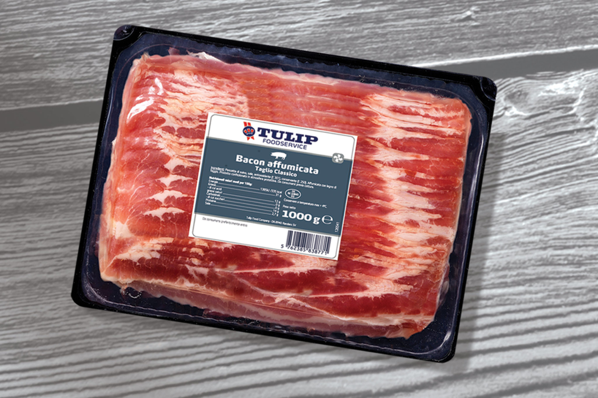 Bacon affumicato Tulip Professional Horeca. Taglio classico, confezione da 1 kg.