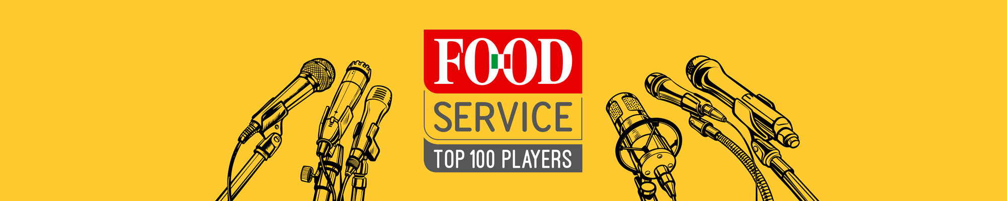 Food Service Top Players: logo su sfondo giallo con microfoni.